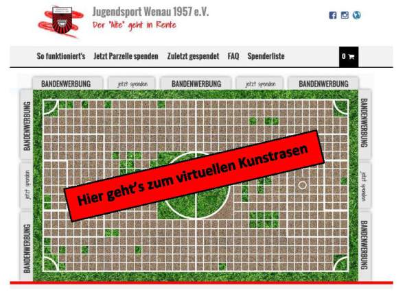 Hier geht’s zu unserem virtuellen Neuen Kunstrasen wo ihr gerne spenden könnt
